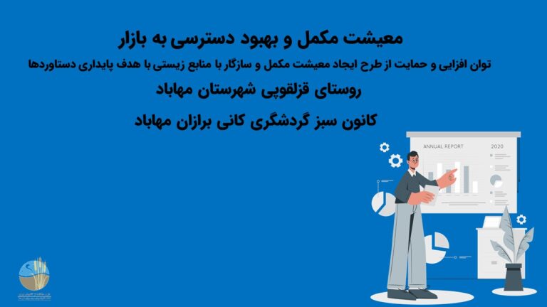 معیشت مکمل و بهبود دسترسی به بازار – توان افزایی و حمایت از طرح ایجاد معیشت مکمل و سازگار با منابع زیستی با هدف پایداری دستاوردها – روستای قزلقوپی شهرستان مهاباد- کانون سبز گردشگری کانی برازان مهاباد
